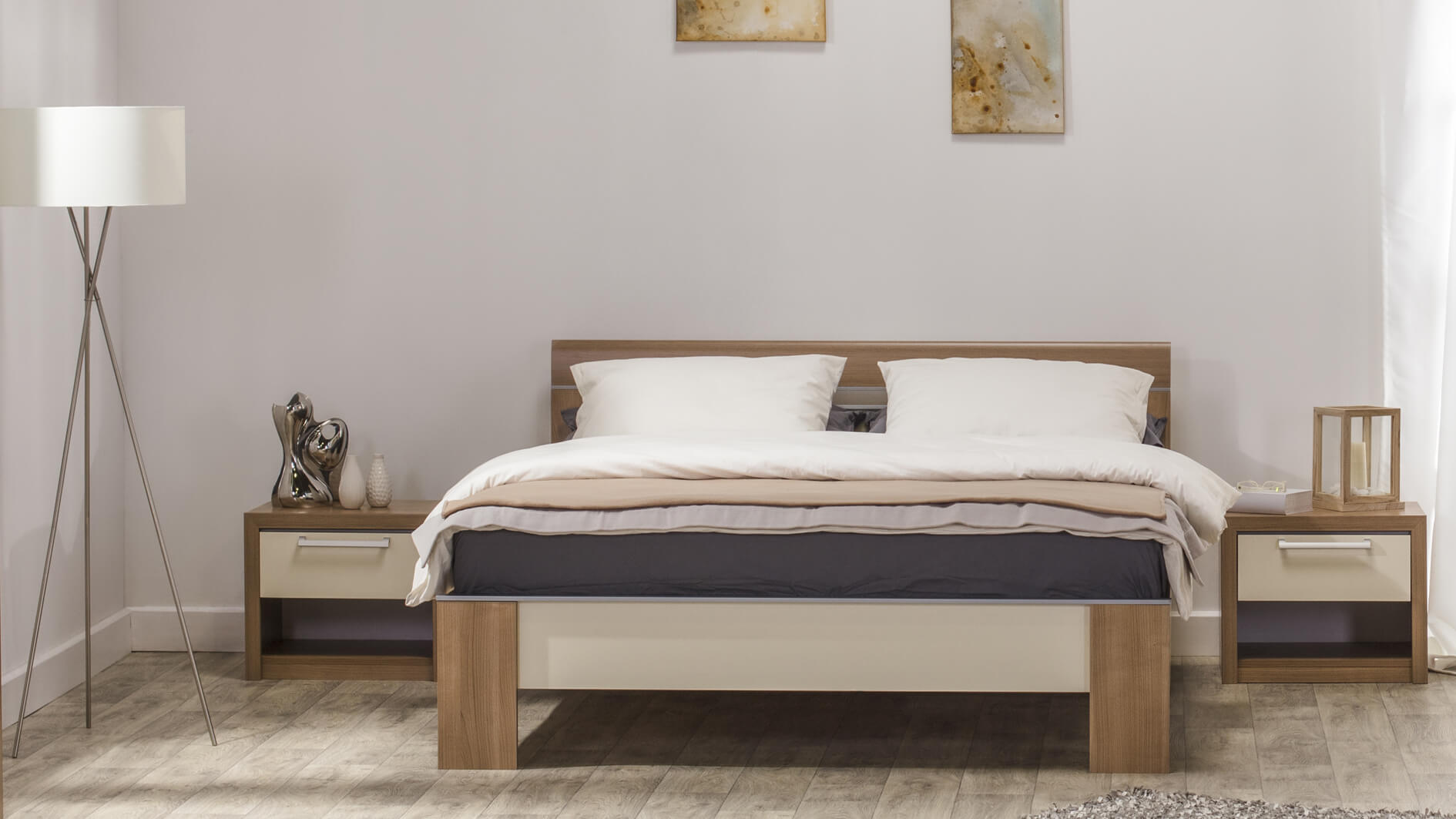 Keln bed is an elegant model, which combines the tone of cherry with beige color and brings a special warmth to your intimate corner. An interesting combination of colors and materials contributes to the special attractiveness of this bed, which is an integral part of the Keln bedroom.