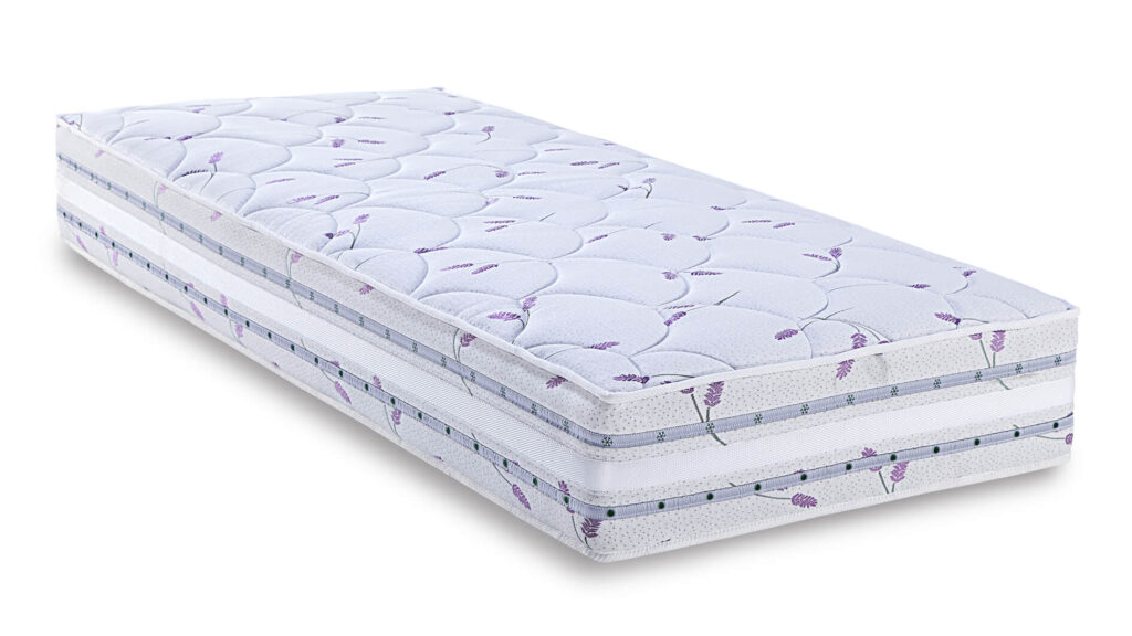Nice bed has a headboard height of 87 cm. It has an extremely spacious sleeping area and is designed for a mattress size of 200 x 180 cm. The mattress is not included in the price. Our recommendation is to take a look at the SIMPO mattress offer and choose the one that suits you best. The mattress support is made of plywood coated with kraft foil.
