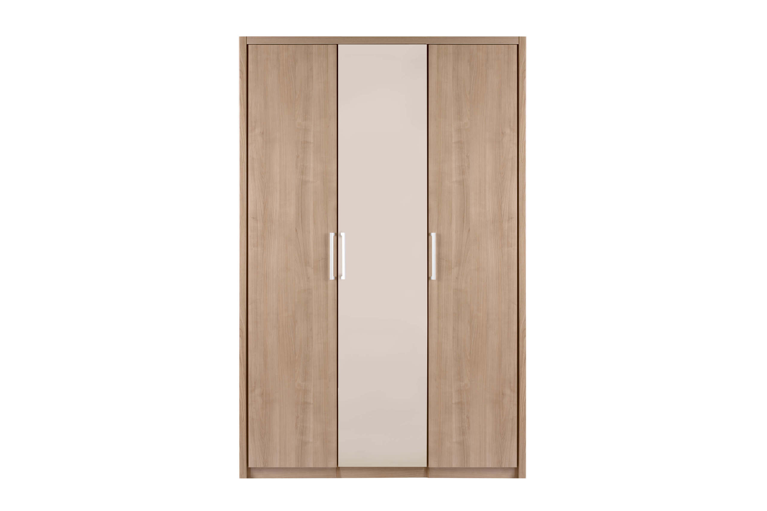 Keln wardrobe measuring 144.3 x 58.6 x 222.7 cm is a three-wing model with a classic door. Inside, there are four separate storage segments along the entire length of the entire vertical. In the second part there is one large shelf for storage and a part with a wardrobe bar.
