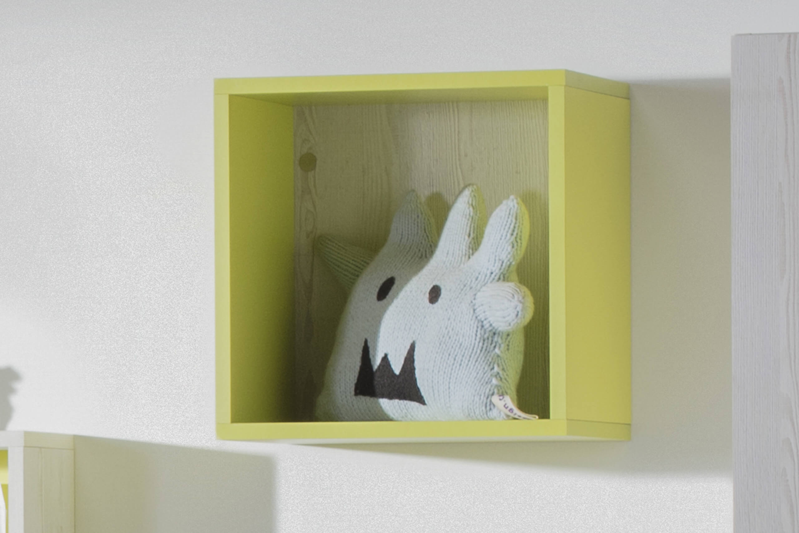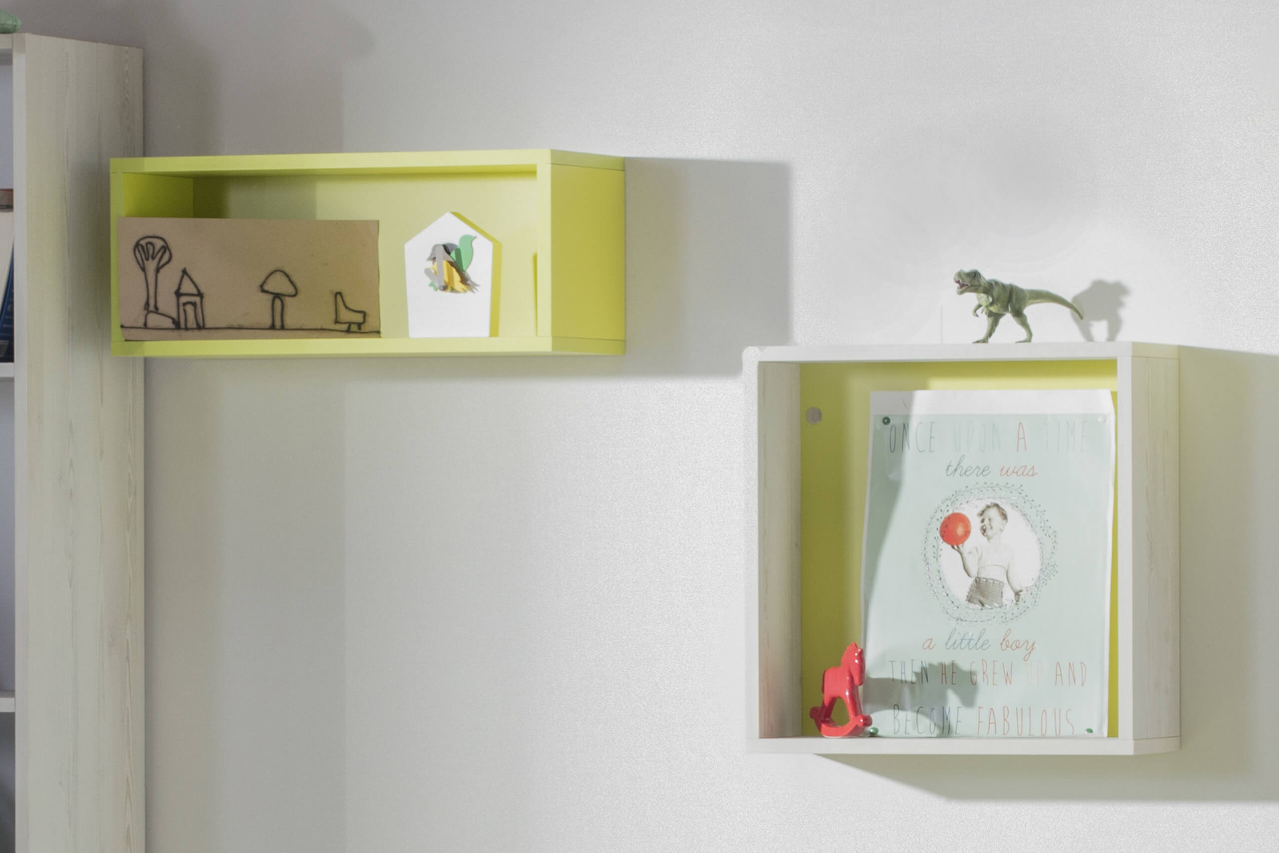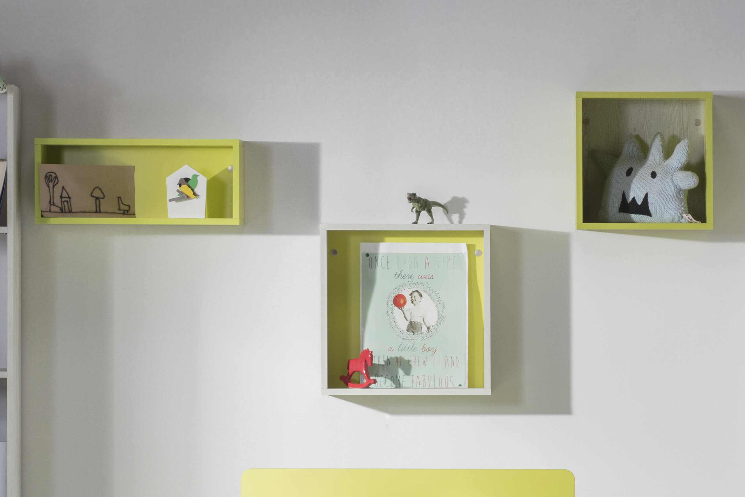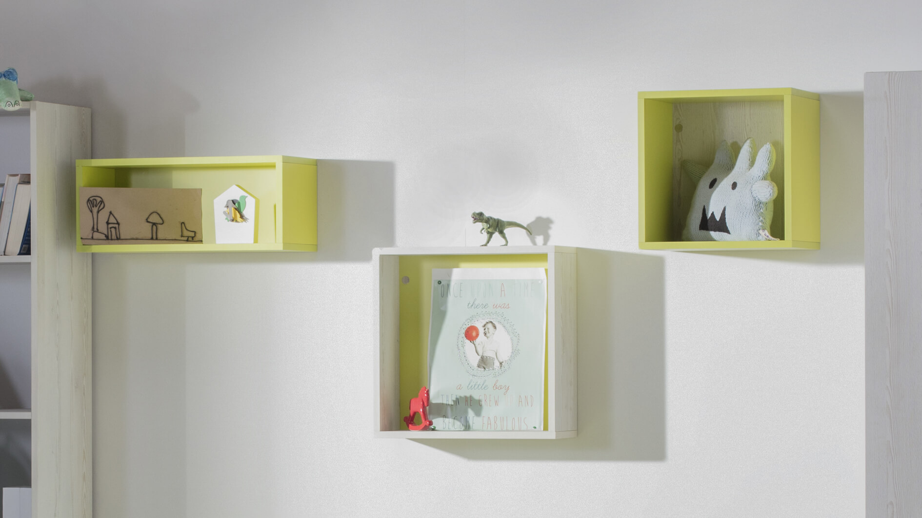 Lino shelf in the dimensions of 40 x 30 x 40 cm is a deeper wall shelf, in the shape of a practical cube. You can place it above the dresser, bed and study desk and change the content you will present in accordance with the children’s interests.