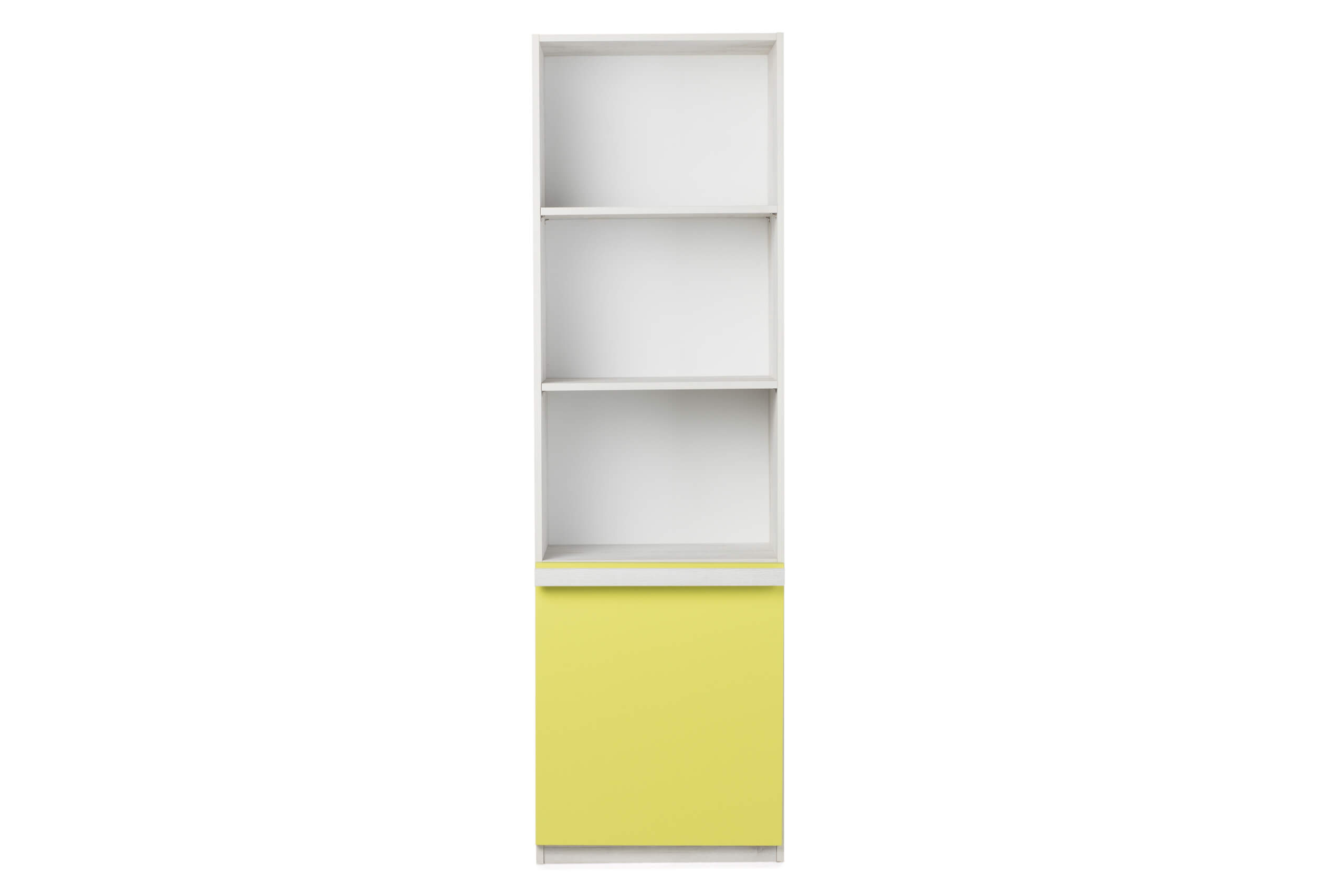 Lino shelf in the dimensions of 60 x 40 x 200 cm is a high, freestanding shelf. It has three open segments, which you can fill with books, albums, framed photos and your children’s diplomas. There is enough space for toys as well. The lower part of the shelf has a single door and the interior is divided into two parts, which is suitable for storing various things.