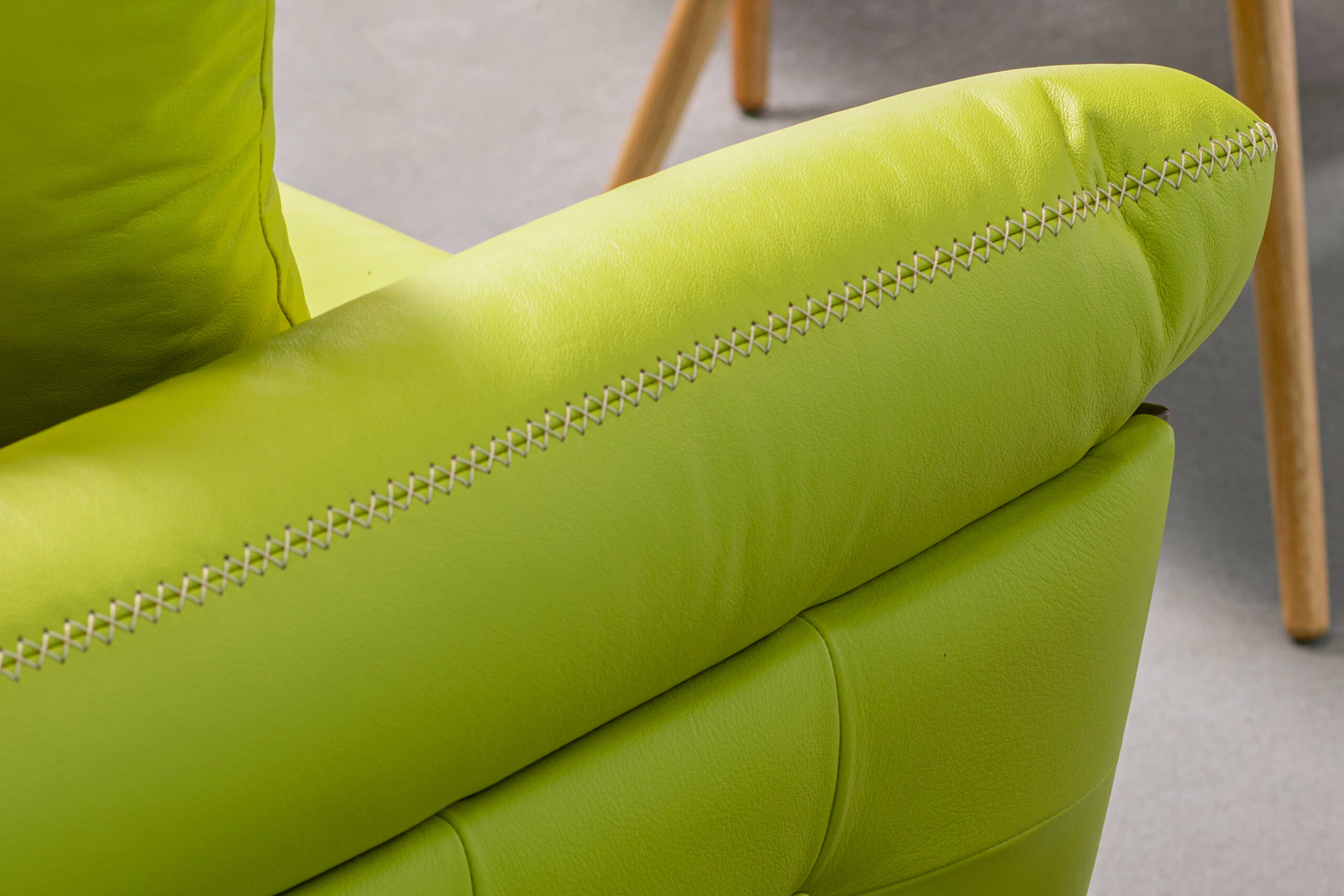 If you want leather as a material, the best would be to choose Bellissima or Federica leather. Due to the specific manufacture, this armchair is produced only in leathers of this type.