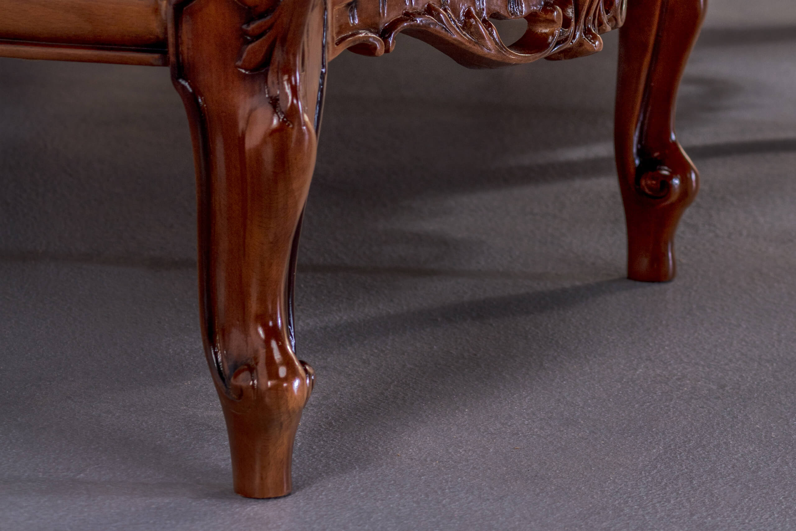 The Victoria armchair of timeless design was made to create a royal corner in your favorite space. This armchair impresses with details made of elegant decorative carved elements, decorative rivets and buttons in the backrest. You will be reluctant to separate from it because it will suit you in terms of appearance and comfort. It is the work of handcraft by our top craftsmen.