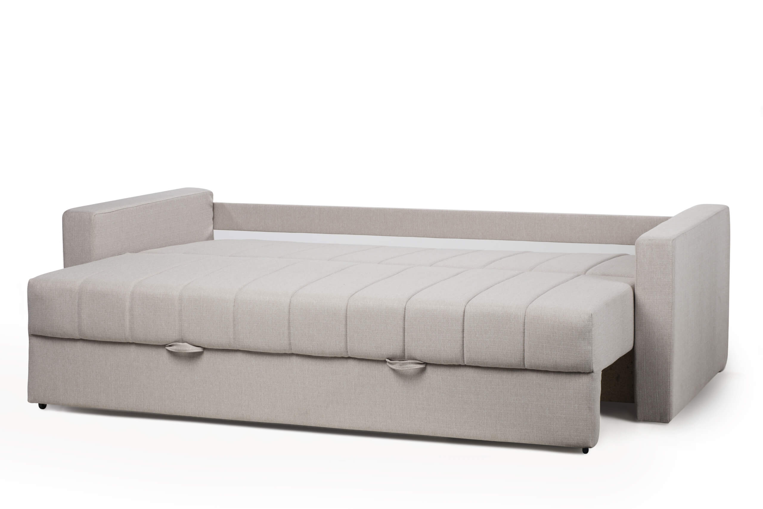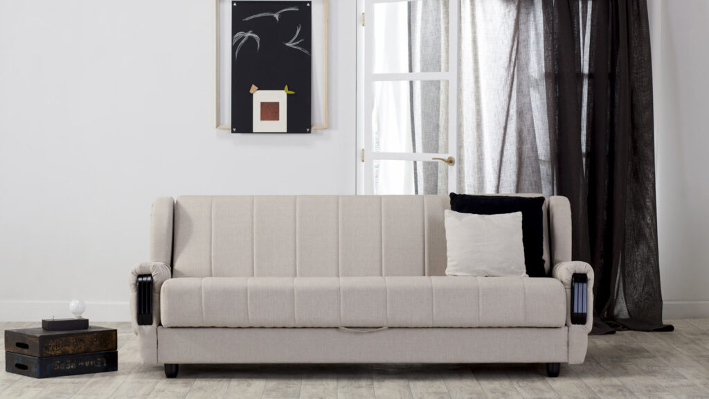This couch simply unfolds into a sleeping bed, according to the principle of pulling out the seat part and lowering the back part. Its advantage is an extremely comfortable sleeping area in the dimensions of 200 x 160 cm, where two people can sleep. With this bed, you will always be ready to welcome the guests who come to stay the night.