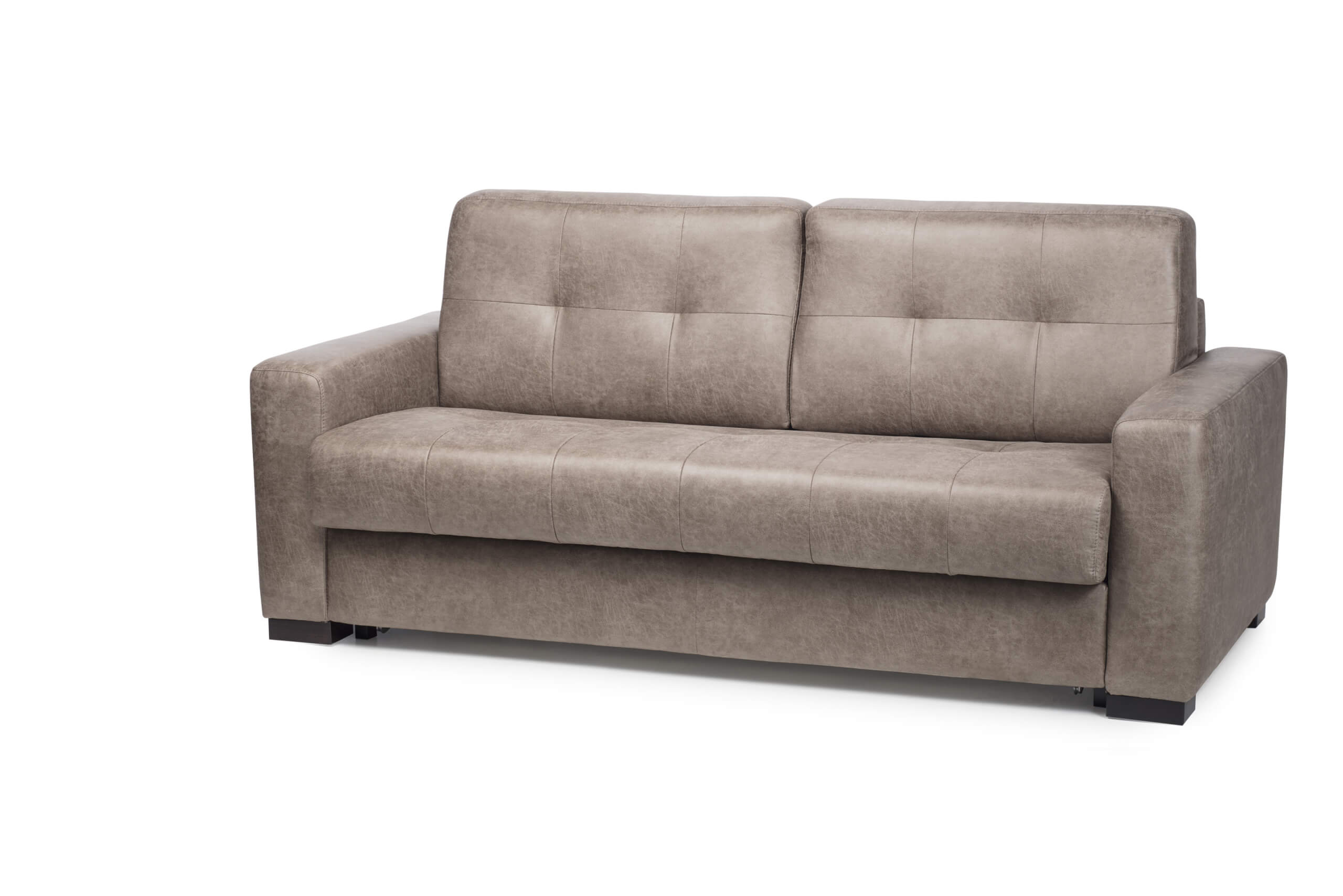 The De Marco three seater with mechanism provides the possibility of unfolding into a bed with a mattress for everyday comfortable sleep. The mattress measures 193 x 140 cm, height 12 cm is made of polyurethane foam and is an integral part of the model. In the unfolded position, the three seater has the following dimensions: 202 x 206 x 85 cm.
