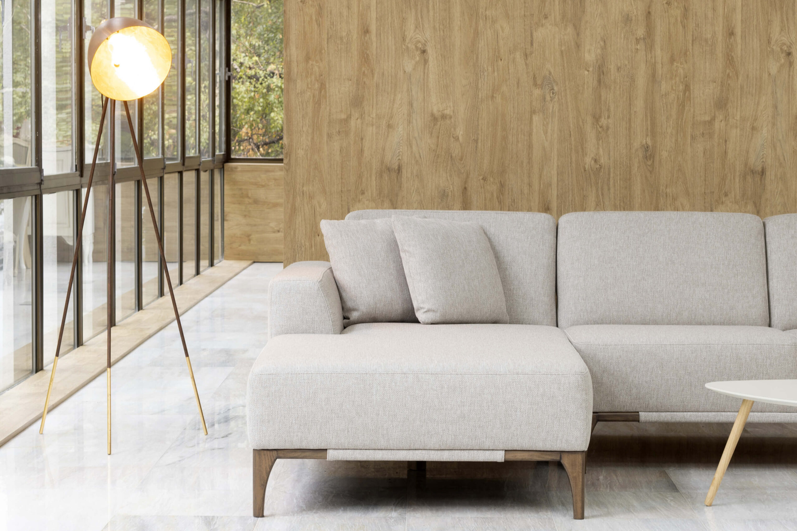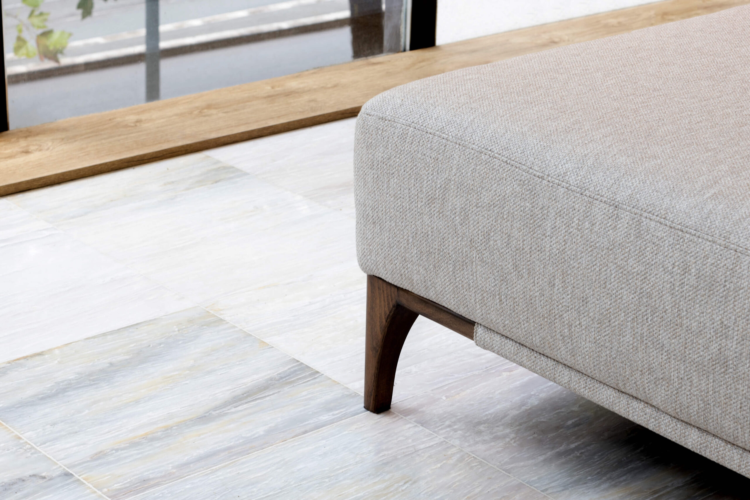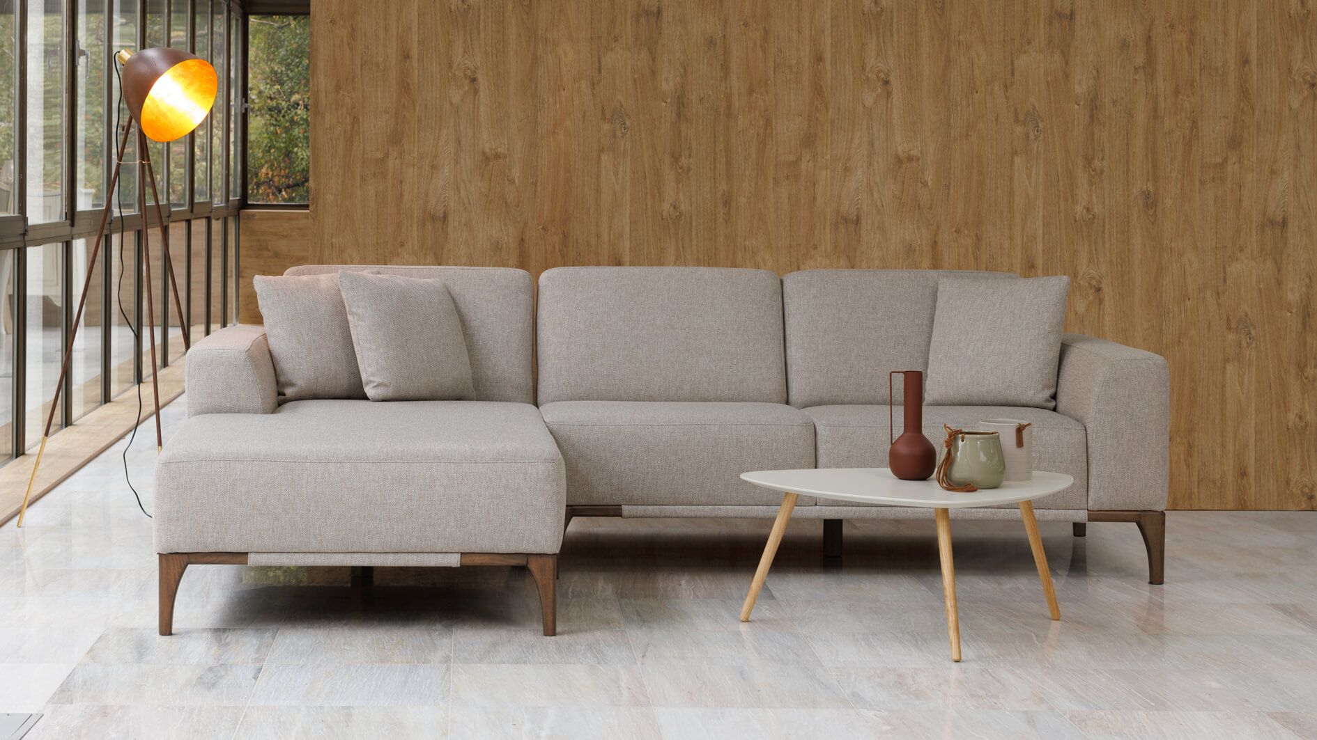 Elizabet ugaona garnitura je posebno praktična za manje prostore, u kojima je imperativ dobro osmišljen, funkcionalan i estetski lijep enterijer. Karakteriše je kombinacija minimalističkog dizajna i atraktivnog drvenog rama, djelimično tapaciranog u štofu u kome je garnitura izrađena.
